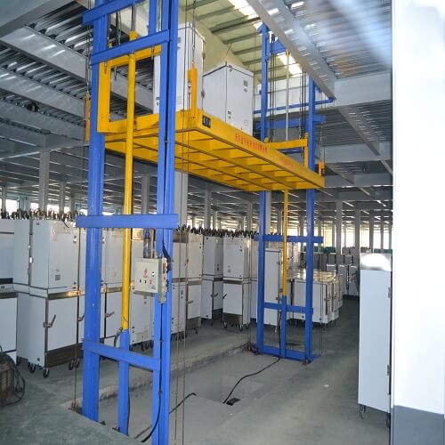 導軌式升降機由于采用了液壓系統,且有良好的控制方式,電梯運行故障率可降低。導軌式液壓升降機下行時, 靠自重產生的壓力驅動。