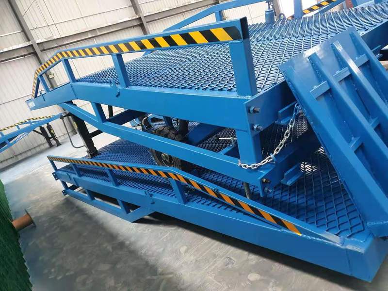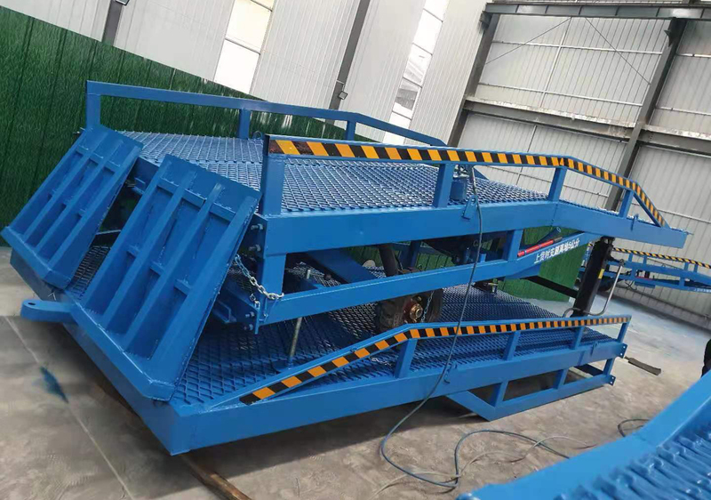 移動液壓登車橋是實現(xiàn)貨物快速裝卸的專用輔助設備,它的高度調節(jié)功能使貨車與庫房的貨臺之間架起一座橋梁,叉車等搬運車輛通過它能直接駛入貨車內部進行貨物的批量裝卸,僅需單人作業(yè),即可實現(xiàn)貨物的快速裝卸。移動液壓登車橋使企業(yè)減少大量勞力,提高工作效率,獲取好的經(jīng)濟效益。臺面均設計為網(wǎng)格狀鋼板,這種結構能保證具有很好的強度,又具有防滑功能,還能方便地清掃工作臺面,使它能經(jīng)常地保持清潔、美觀。移動液壓登車橋無須外接電源,通過手搖泵做動力能輕松地在其整個調整范圍內按50mm的倍數(shù)進行高度的調整,可以充分適應各種不同高度的貨車。